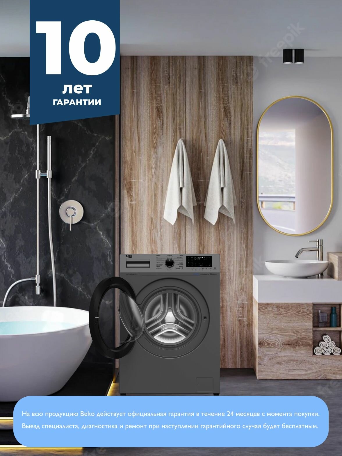 Стиральная машина Beko WSPE6H616W, белый/черный