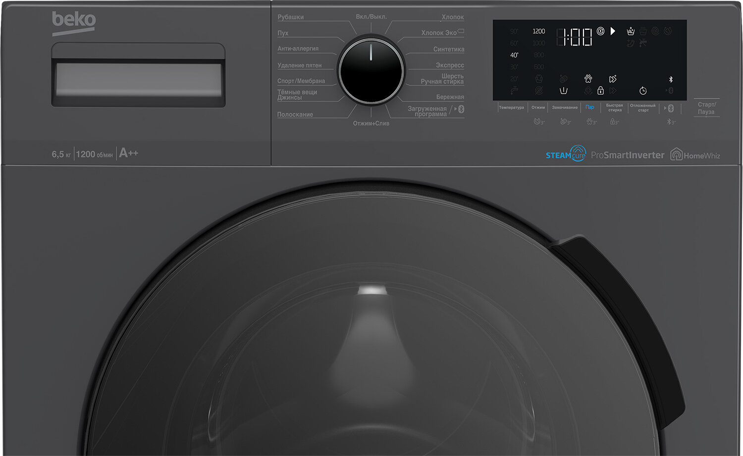 Стиральная машина Beko WSPE6H616S серебристый корпус, черный люк, фронтальная загрузка до 6.5кг, максимальная скорость отжима 1200об/мин