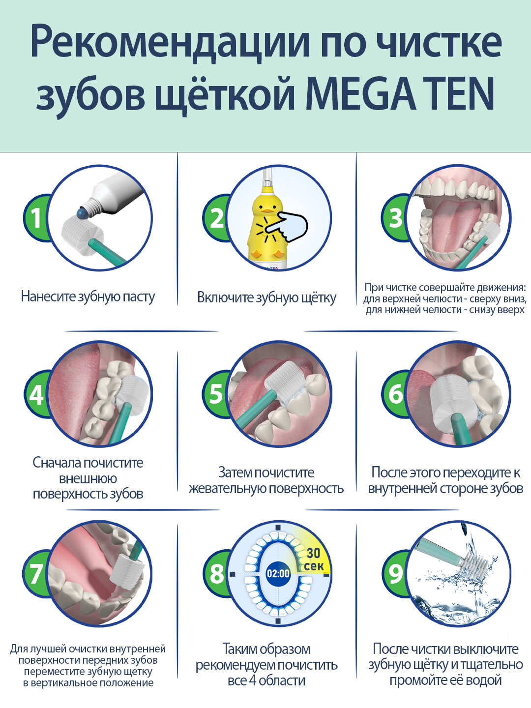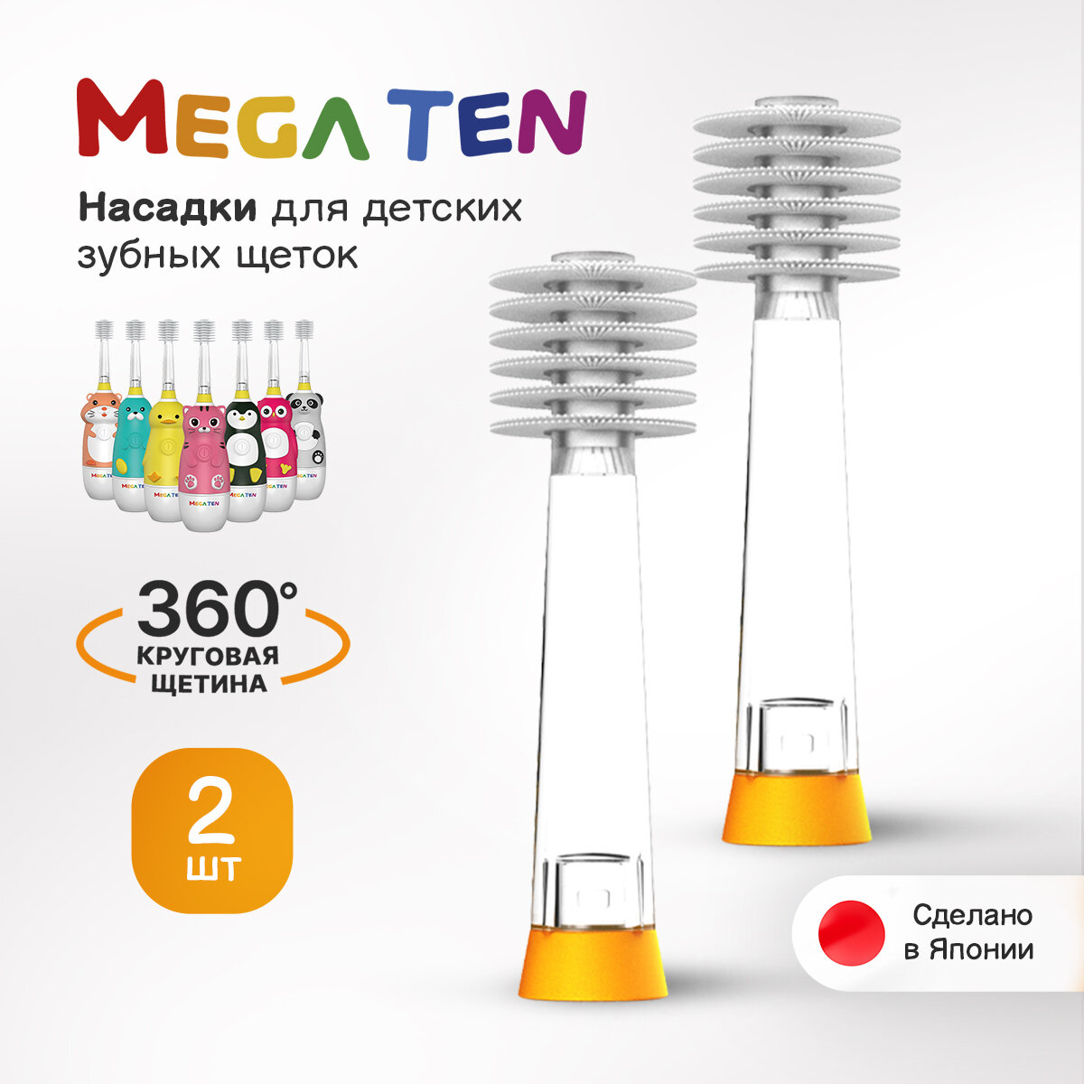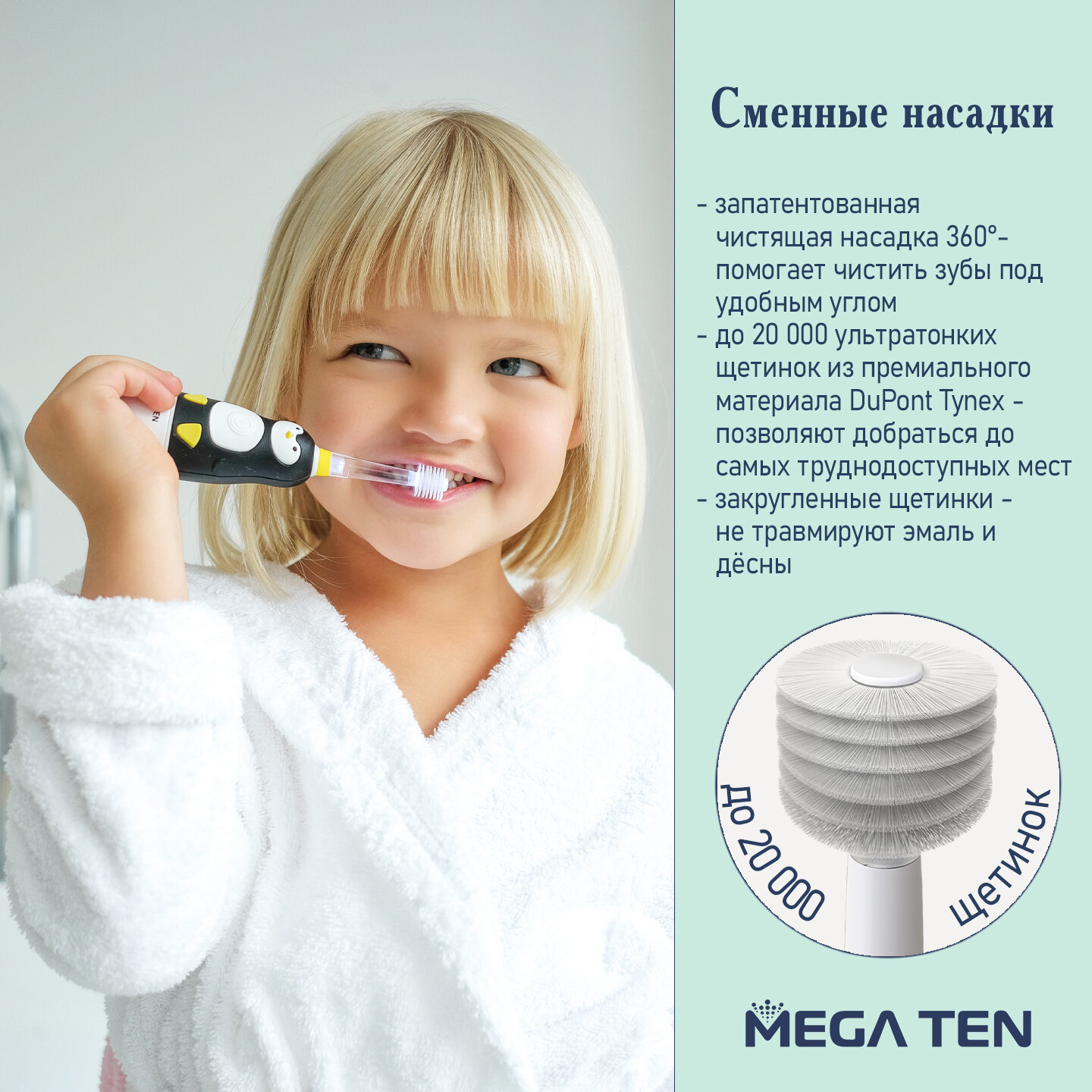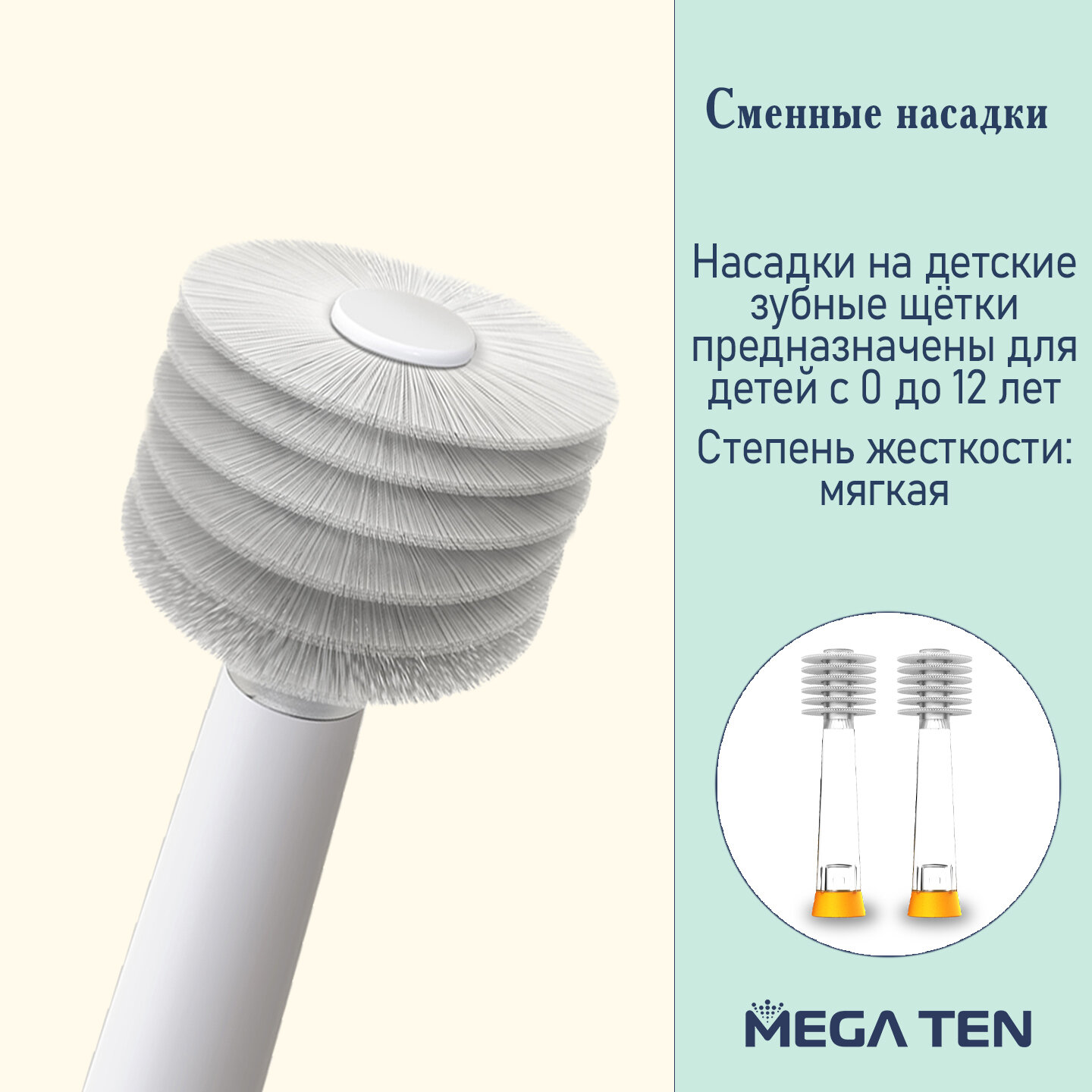 Комплект насадок для электрической зубной щетки MEGA TEN Сменная насадка для megaten KIDS SONIC интересное:
