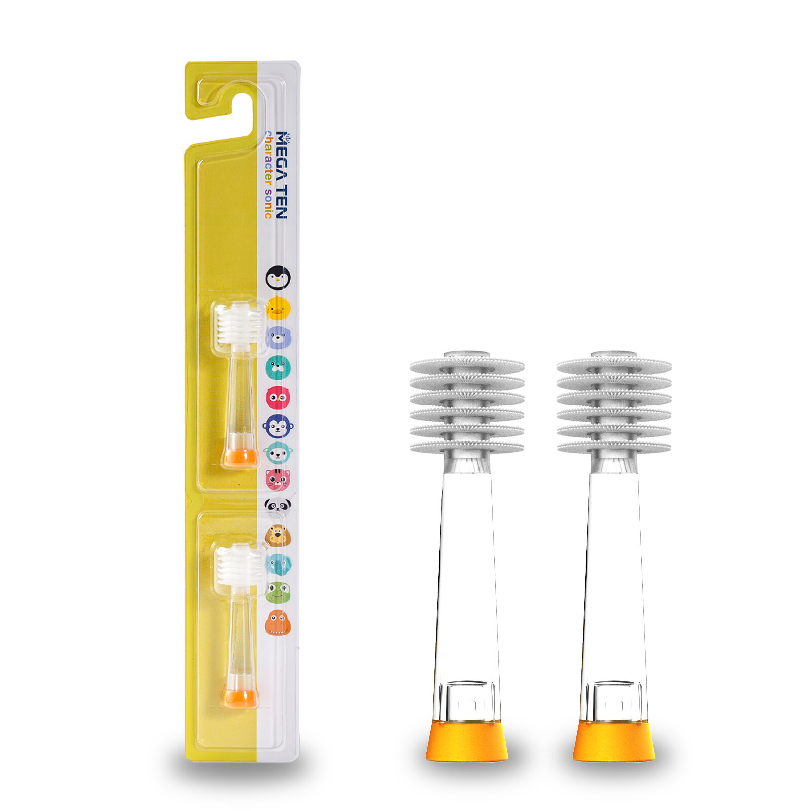Набор насадок MEGA Ten Kids Sonic для звуковой щетки, белый/желтый, 2 шт.