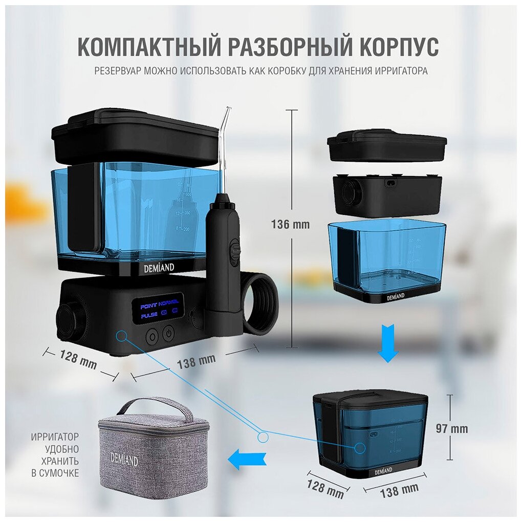 Стационарный ирригатор с аккумулятором для очистки полости рта 2 в 1 DEMIAND COMBO IR-Z820/Черный интересное: