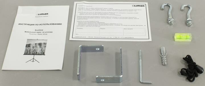 | Минусы: | Большая зернистость экрана, поверхность не гладкая. При просмотре фильмов достаточно сильно заметно. Ненадежная и неудобная конструкция треноги, ограниченность регулировки экрана по высоте, неудобно закреплять экран на треноге, надо закручивать болт. |