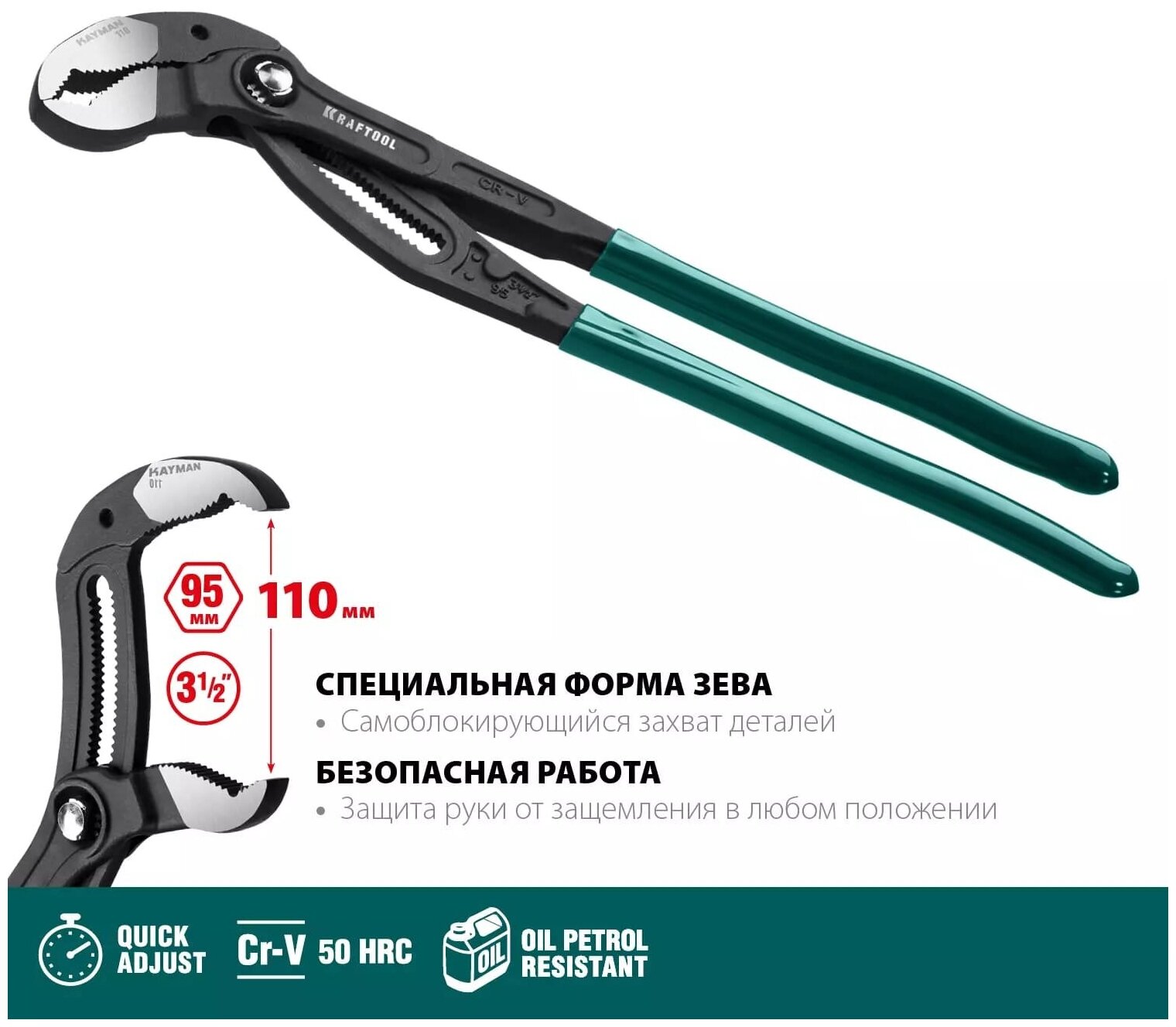 Клещи переставные "KAYMAN", быстрая регулировка, Cr-V, max захват до 95 мм, 400мм, KRAFTOOL