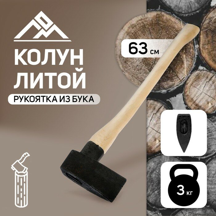 Колун литой 3 кг, деревянное топорище