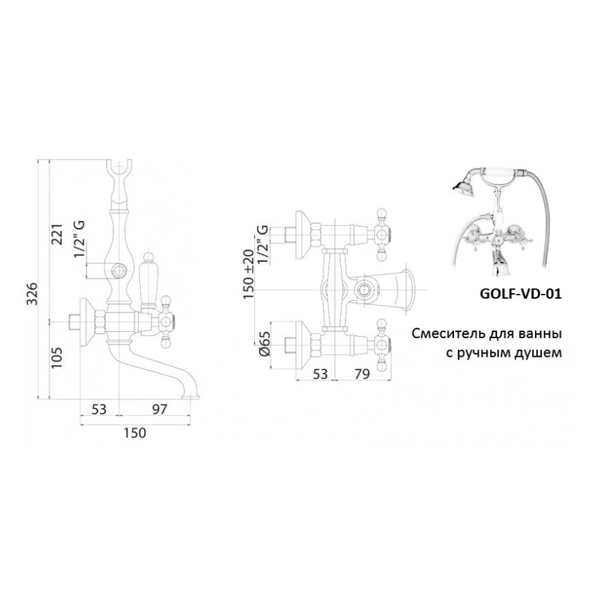 смеситель Cezares Смеситель Cezares Golf VD 01 Bi для ванны с душем