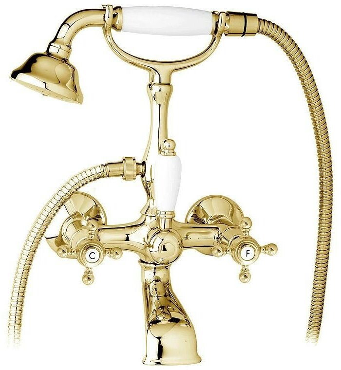 Cezares Смеситель Cezares GOLF-VD-01-Bi для ванны, с ручным душем, хром,ручки белые