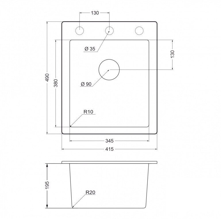 Мойка гранитная EMAR 415х490х195 мм EMQ-1415.Q Антрацит
