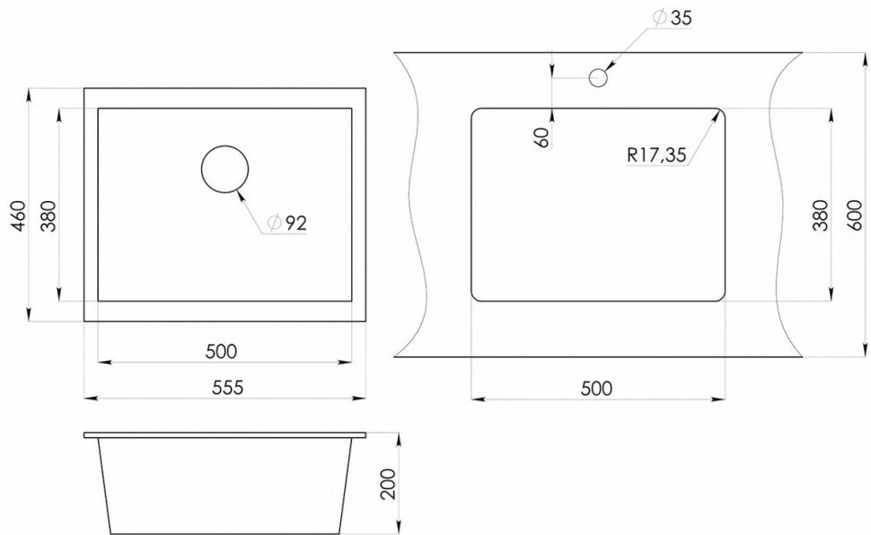 Мойка гранитная EMAR 555х460х200 мм EMQ-1555.P Берилл