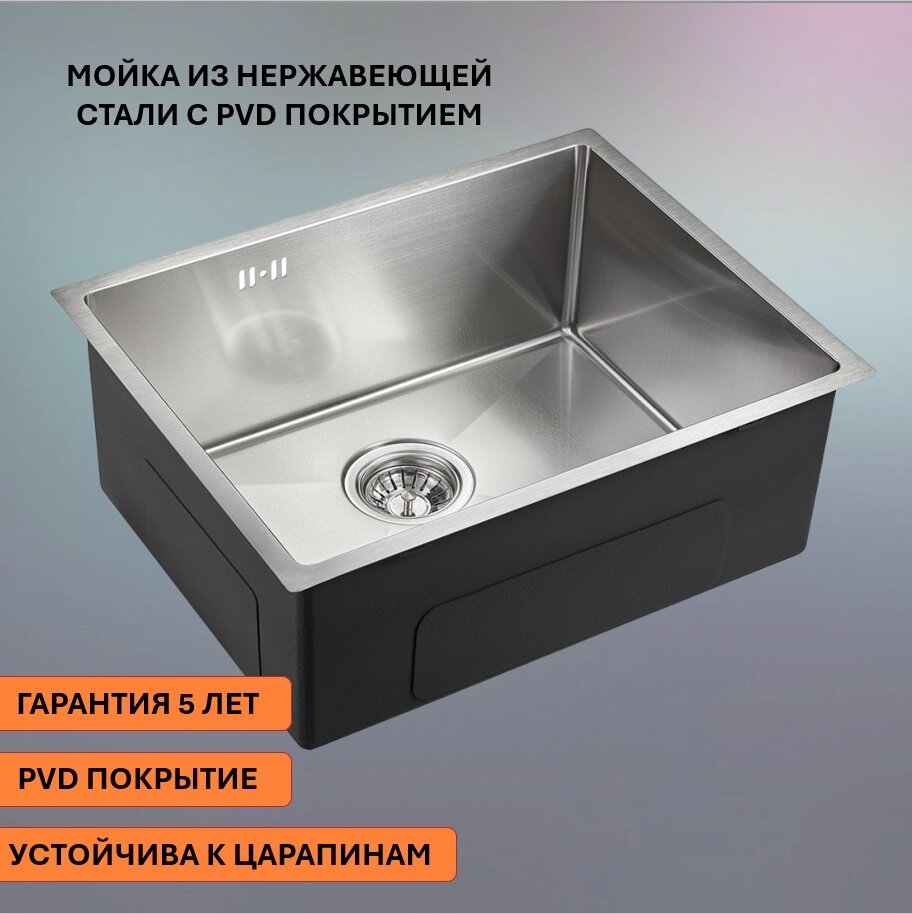 Кухонная мойка EMAR EMB-123 PVD Nano Dark мойка универсального монтажа, черная, PVD покрытие, нержавеющая сталь