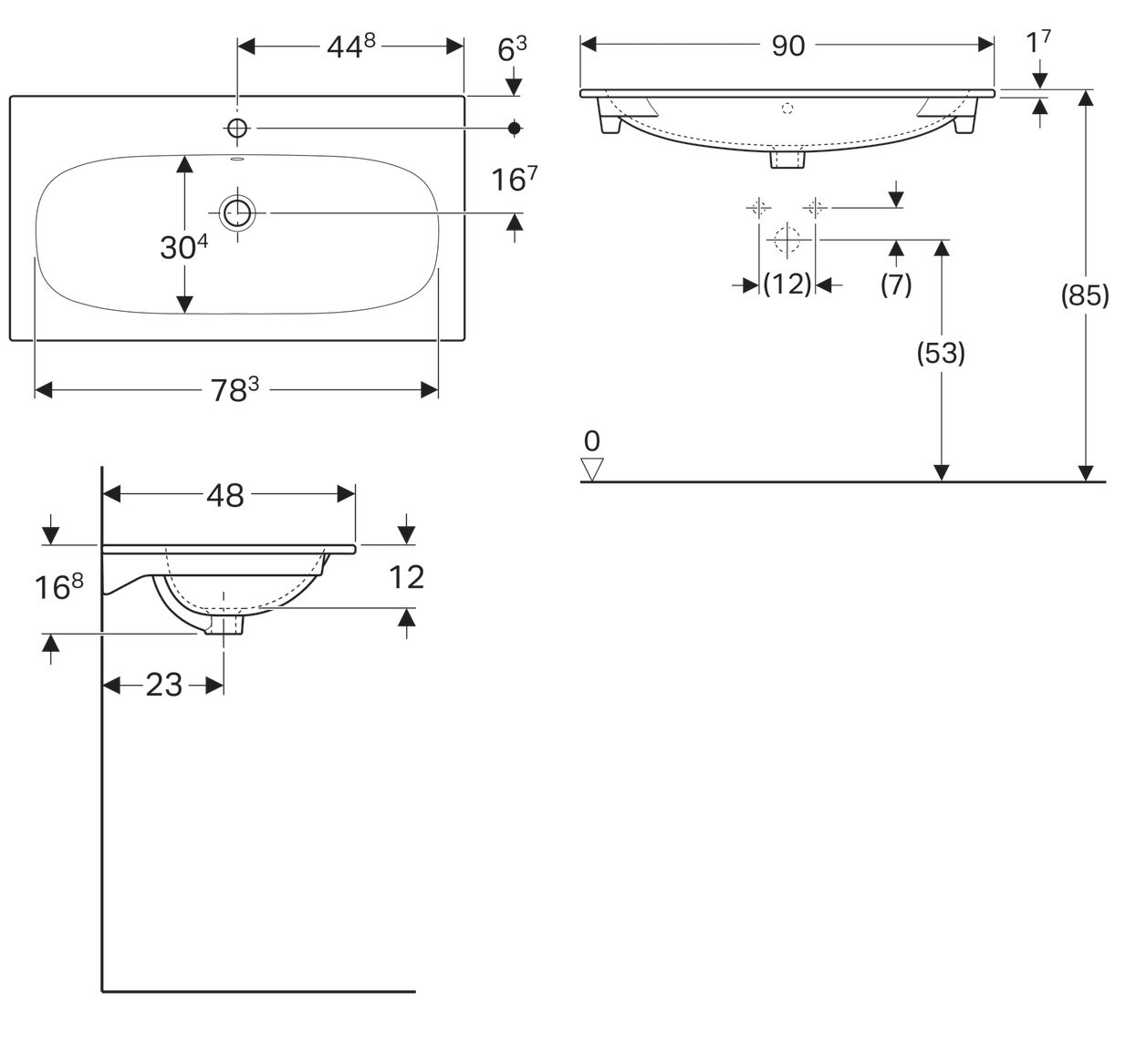 Раковина встраиваемая Geberit Acanto Slim 90x48 белая
