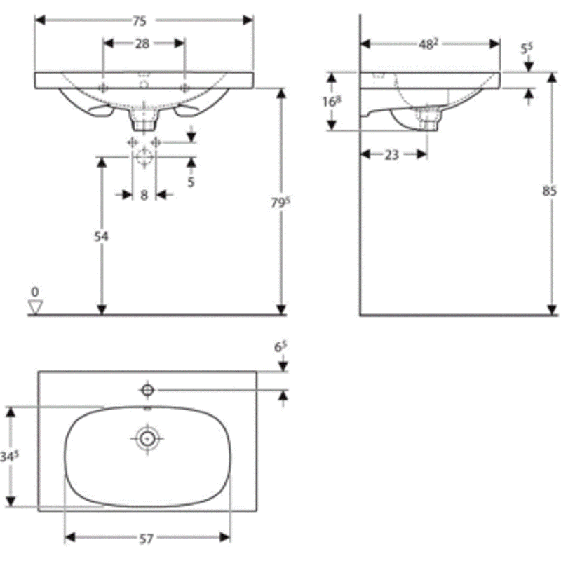 Раковина 750 x 480 мм, с отв. под смеситель, с переливом Geberit Acanto 500.622.01.2