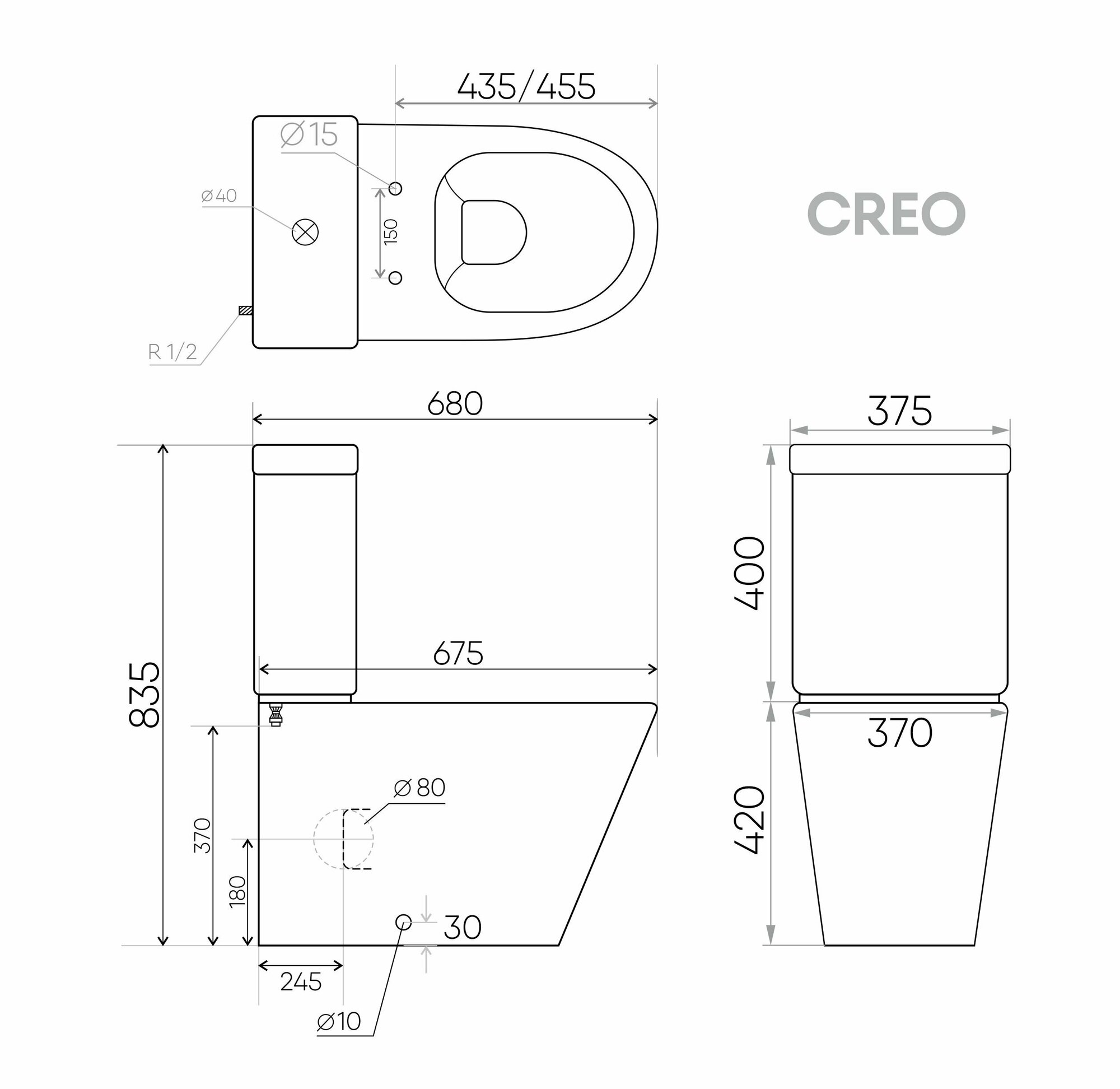 Унитаз-компакт напольный безободковый CREO (CR1003+CR1001T+CR1002R) с горизонтальным сливом интересное: