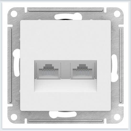 Schneider electric Schneider-electric ATN000185 ATLASDESIGN розетка двойная компьютерная RJ45+RJ45, кат.5E, механизм, белый