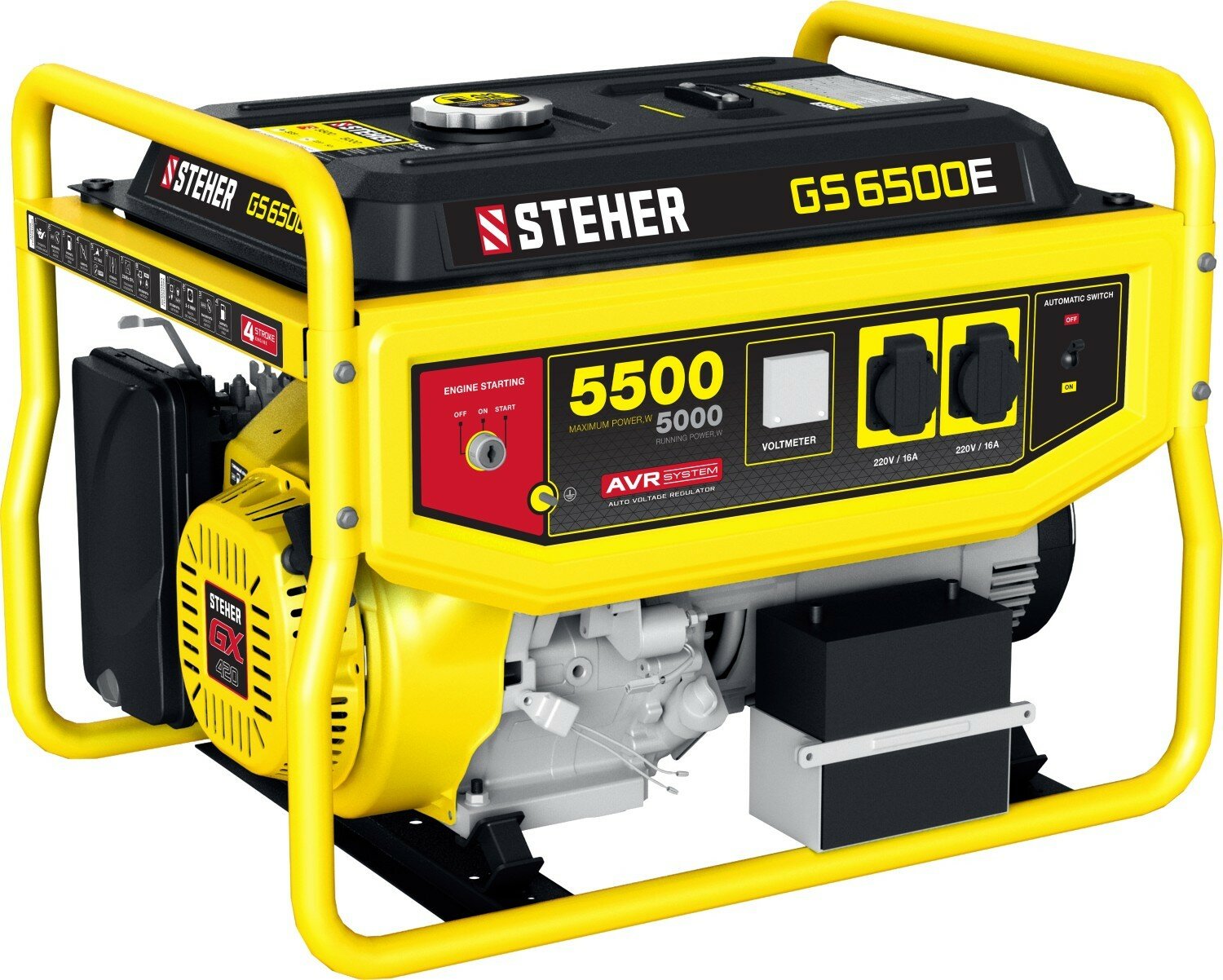 STEHER GS-6500 бензиновый генератор, 5500 Вт, 15 лс двигатель, 220 В, 70 кг