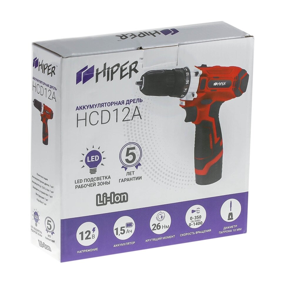 Купить Аккумуляторная дрель-шуруповерт Hiper HCD12/2A