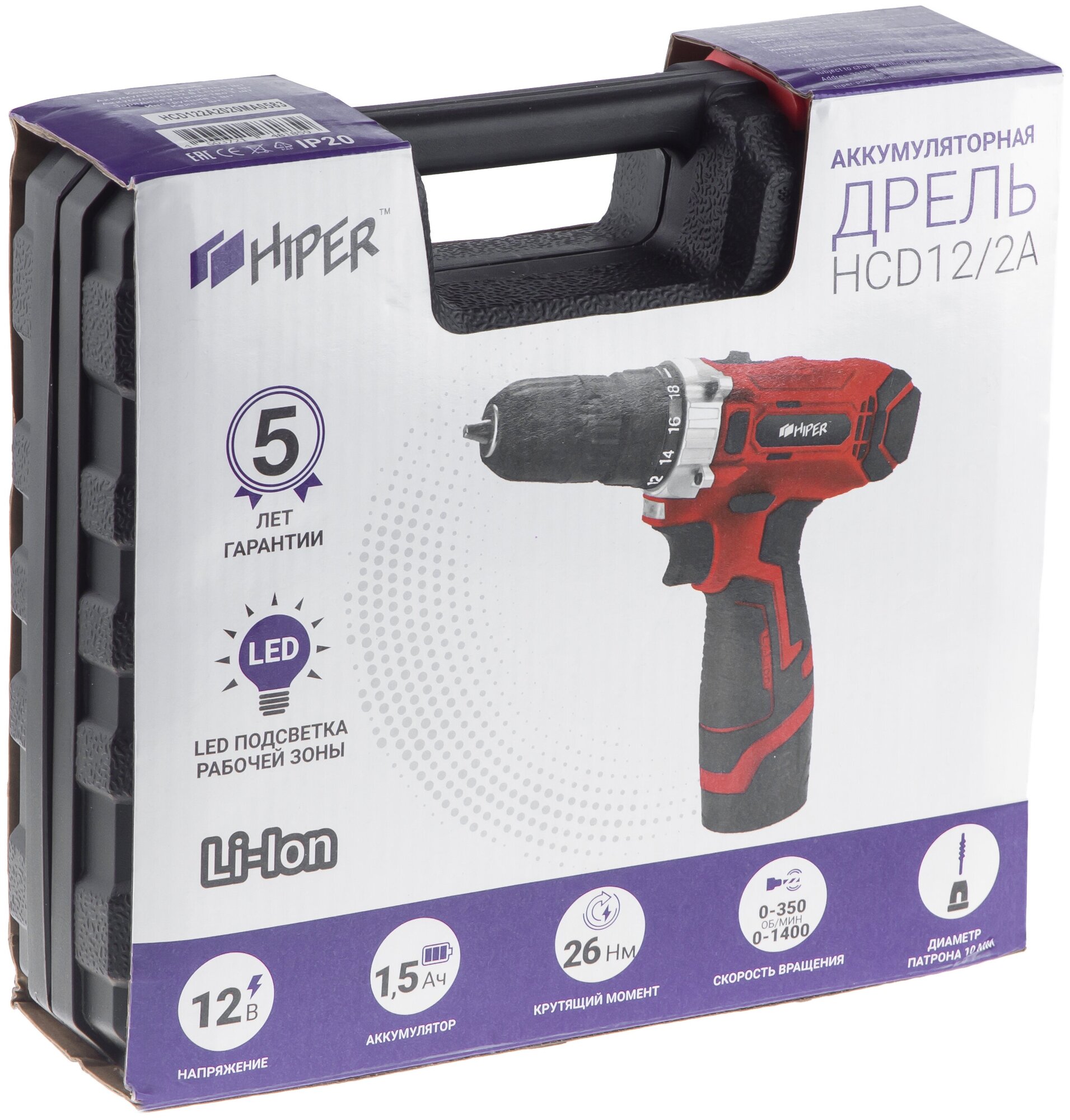 Дрель-шуруповёрт HIPER HCD12/2A интересное: