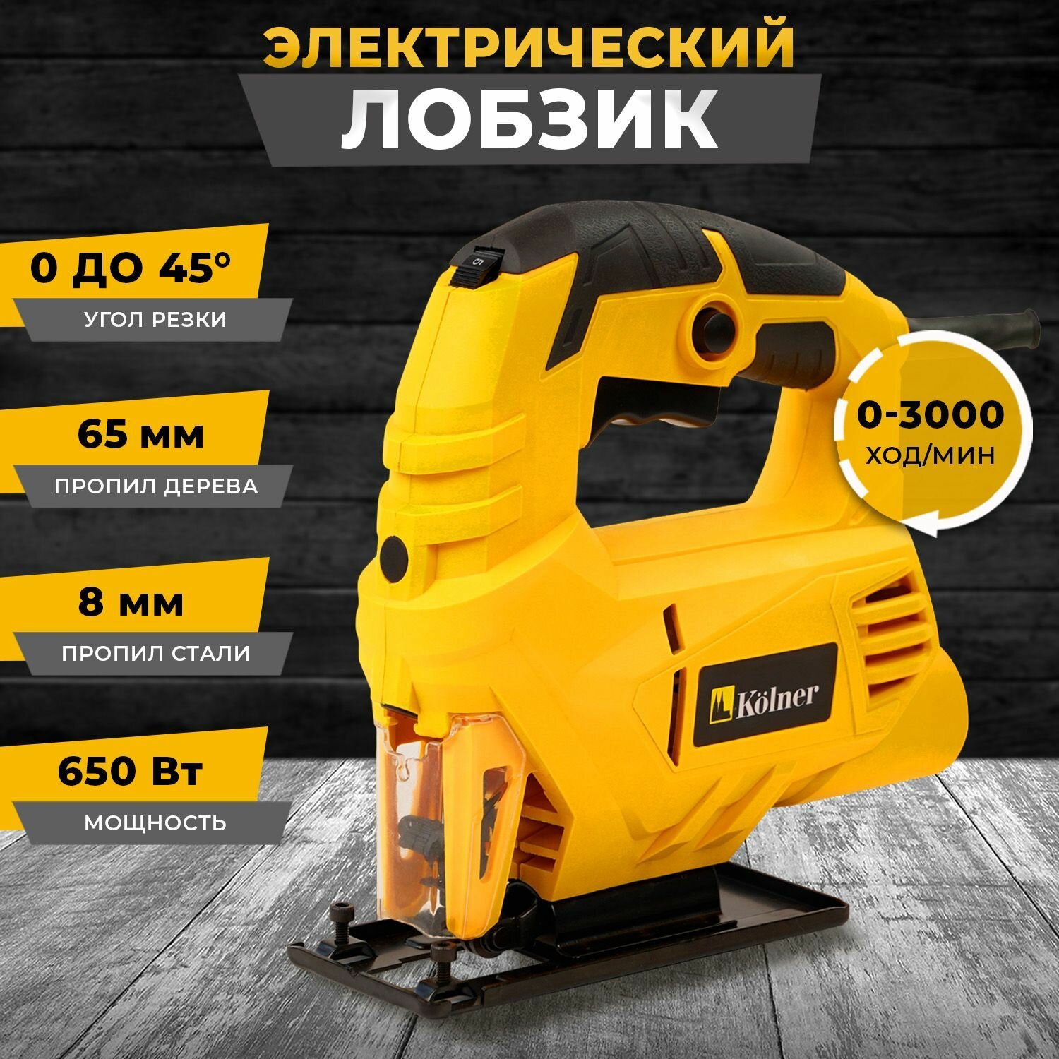 Электролобзик Kolner KJS 650V, желтый, сетевой, возможность подключения пылесоса