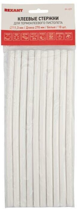 Купить Стержни клеевые REXANT d=11 мм, L=270 мм, белые (упак. 10 шт.)