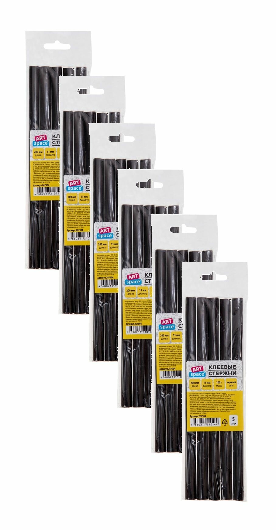Набор из 6 шт. - Клеевые стержни ArtSpace, диаметр 11 мм, длина 200 мм, черные, набор 5 шт., европодвес