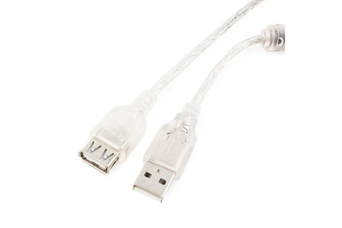 Кабель удлинительный USB 2.0 AM/AF 2 м Pro 2ферит. кольца, экран, прозрачный CCF-USB2-AMAF-TR-2M Cablexpert