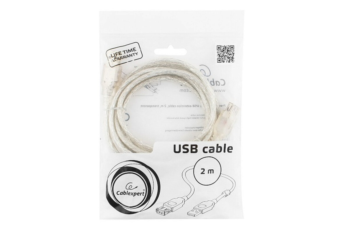 Удлинитель Cablexpert USB - USB (CCF-USB2-AMAF-TR-2M), бесцветный