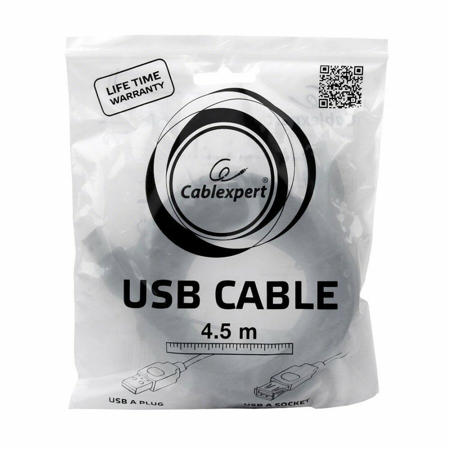 Кабель-удлинитель USB 2.0 Pro, 4.5 метра, экран, черный, Cablexpert AM/AF