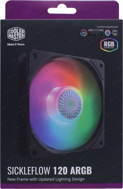 Cooler Master Вентилятор Cooler Master SickleFlow 120 RGB MFX-B2DN-18NPC-R1 d120мм, 650-1800об./мин., подсветка (питание от мат.платы) (ret)