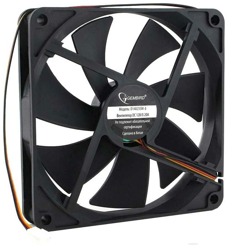 Вентилятор охлаждения Gembird D14025HM-3, 140x140x25, 3 pin, гидродинамический, провод 40 см