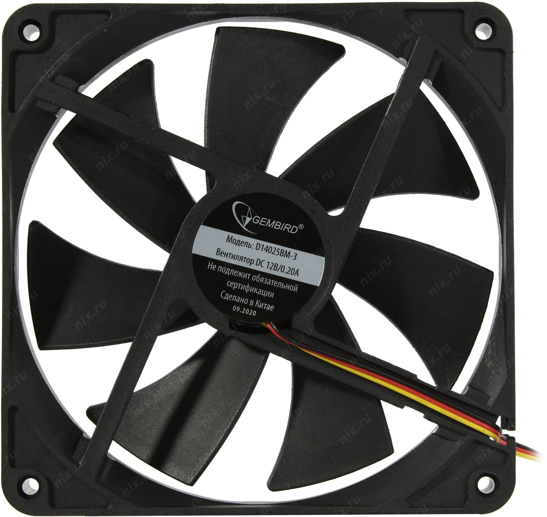 Вентилятор Gembird D14025BM-3 140x140x25 шарикоподшипник 3 pin провод 40 см