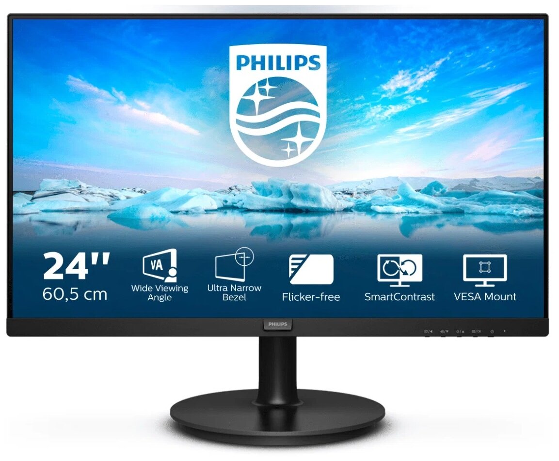 Монитор 23.8 Philips 241V8LA black (VA, 1920x1080, 16:9, 178/178, 250cd/m2, 3000:1, 4ms, 75Hz, VGA, HDMI, MM) (241V8LA)