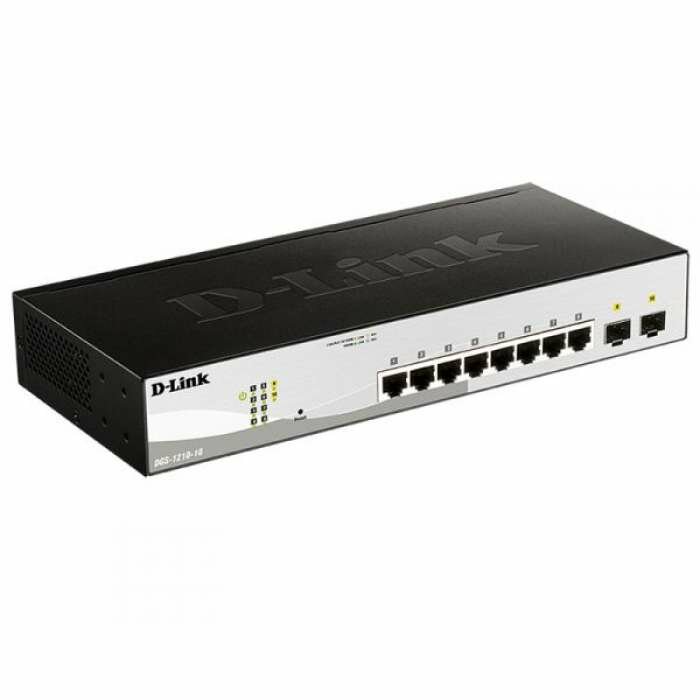 Управляемый коммутатор 2 уровня D-Link DGS-1210-10/FL1A с 8 портами 10/100/1000Base-T и 2 портами 1000Base-X SFP
