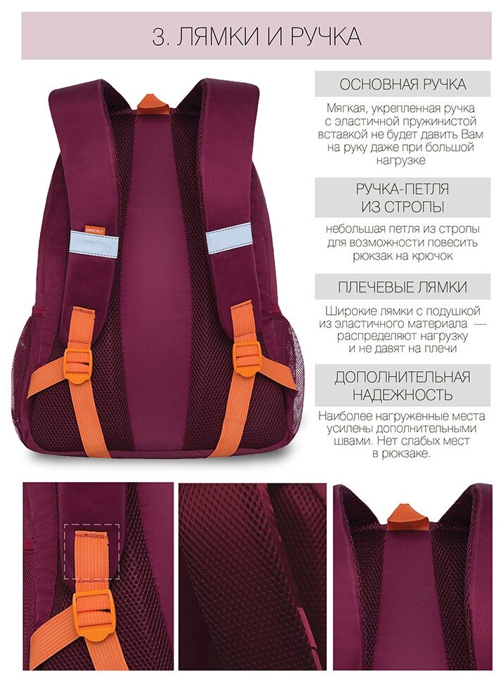 Рюкзак GRIZZLY RD-142-3 брусника, 31х42х18
