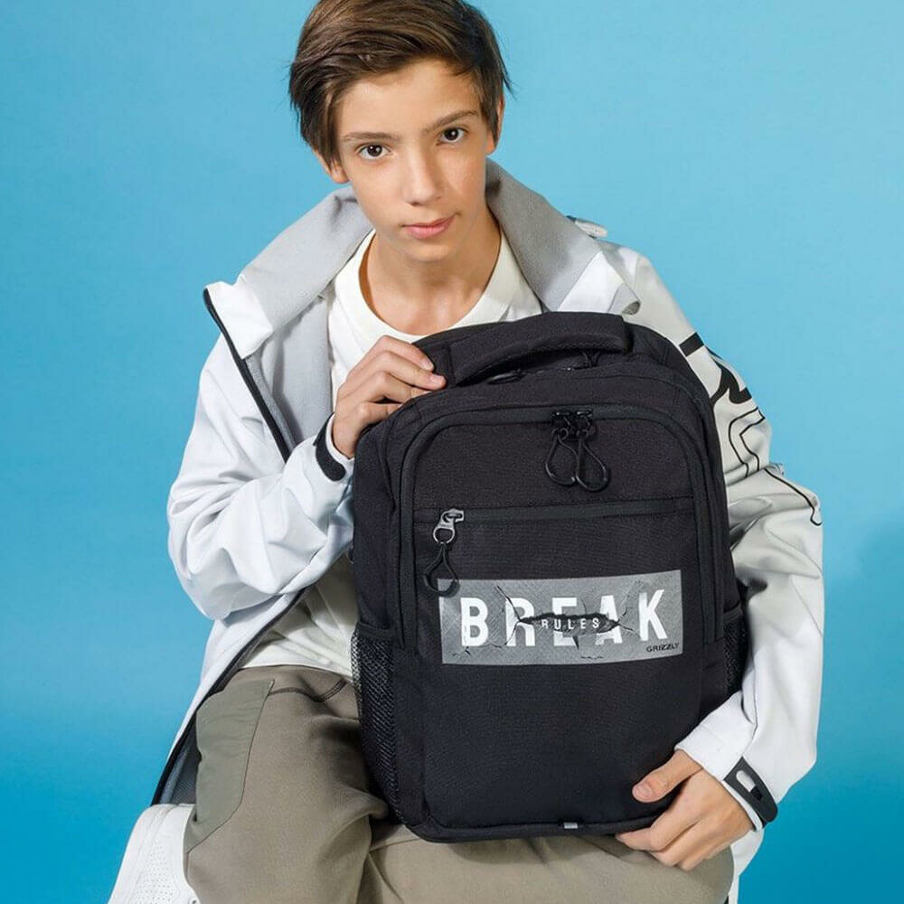 Рюкзак GRIZZLY школьный, анатомический, спинка, 2 отделения, для мальчика, BREAK RULES, 47*32*17