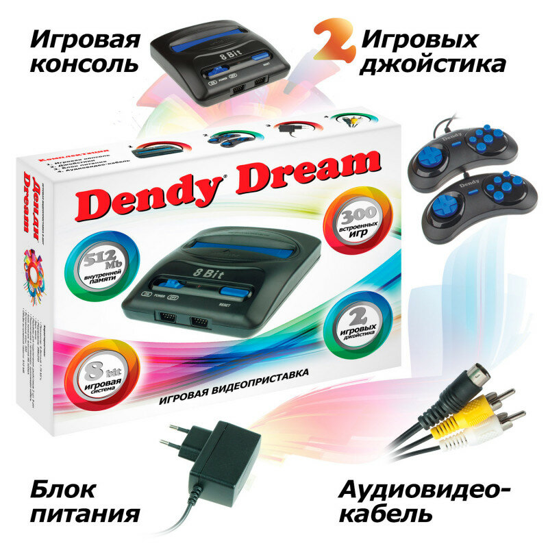 Игровая приставка Dendy Dream 300 встроенных игр (8-бит) / Ретро консоль Денди / Для телевизора
