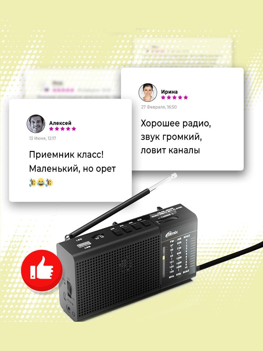 | Отзыв: | Хороший выбор если вы собираетесь на дачу или просто слушать музыку, радиоприёмник качественный. |