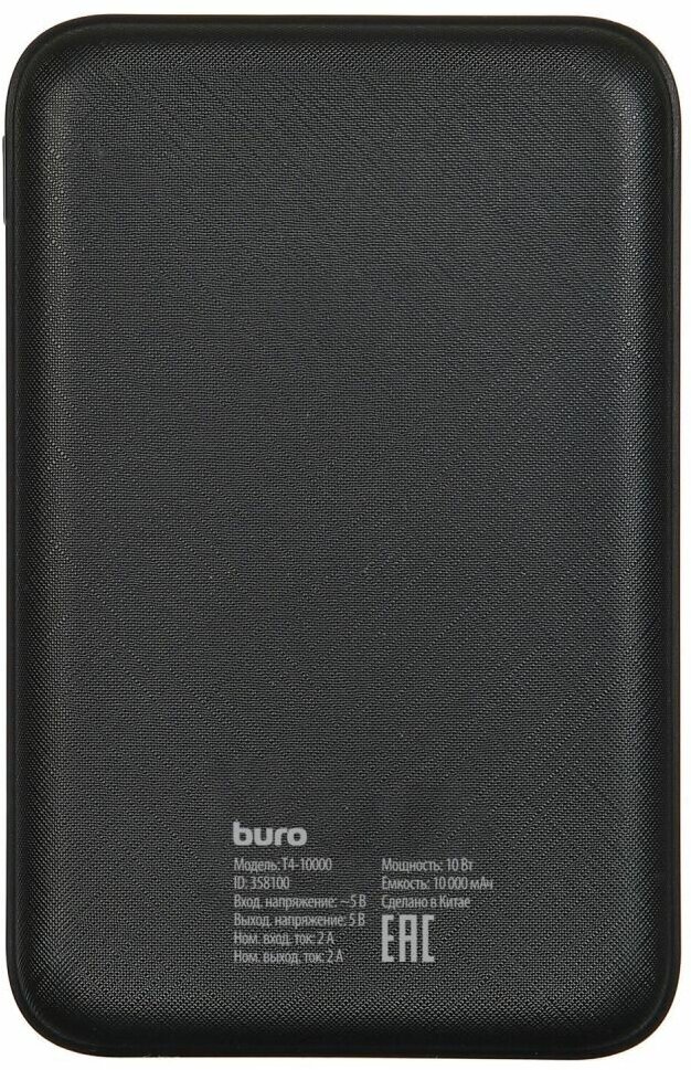 Внешний аккумулятор Buro T4-10000 10000mAh 2A черный (T4-10000-BK), 1827399