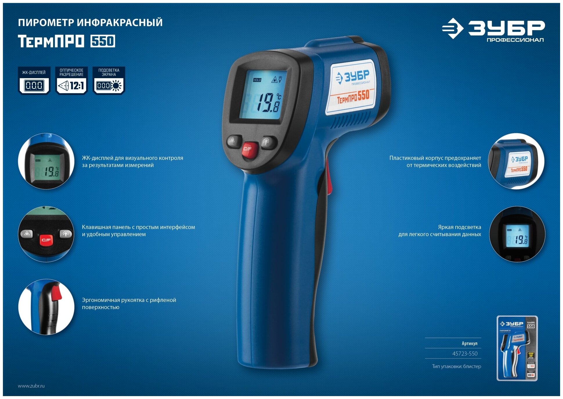 Инфракрасный пирометр Зубр ТермПро-550 профессионал 45723-550