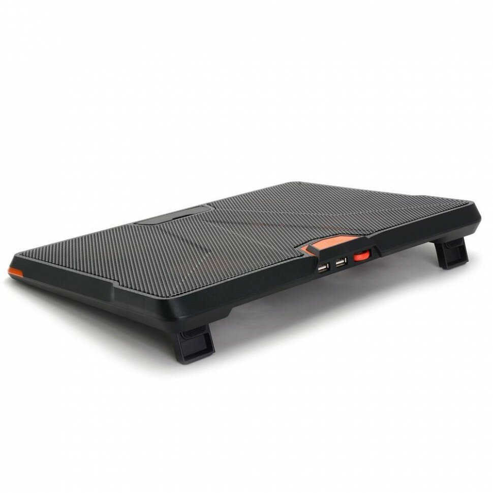 | Плюсы: | 5 вентиляторов, есть слот для usb, оранжевая подсветка, регулировка скорости кулеров |