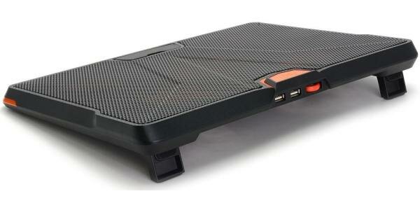 | Плюсы: | 5 вентиляторов, есть слот для usb, оранжевая подсветка, регулировка скорости кулеров |