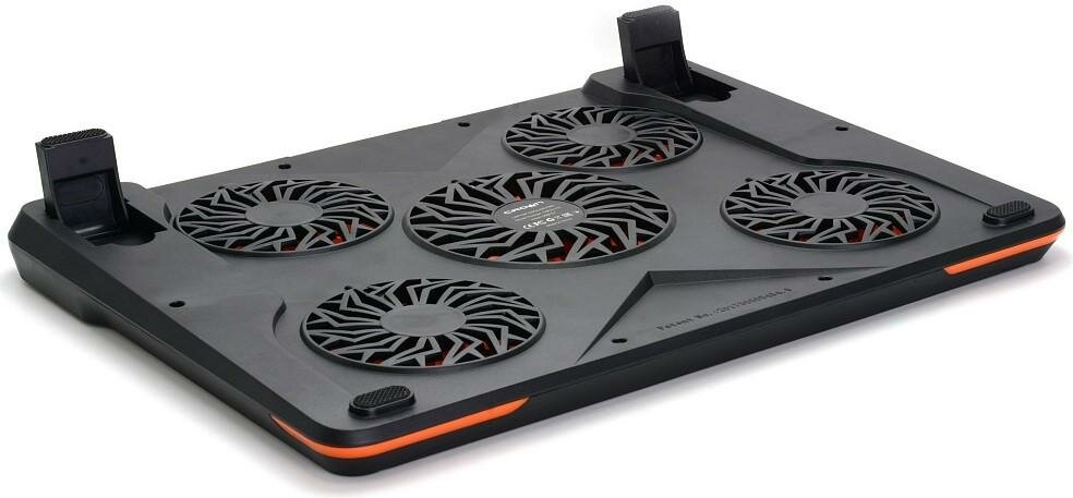 | Плюсы: | 5 вентиляторов, есть слот для usb, оранжевая подсветка, регулировка скорости кулеров |