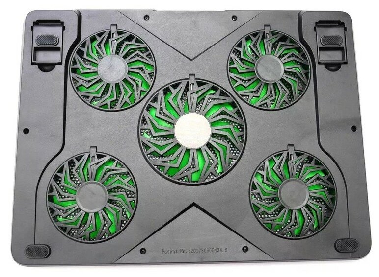 Подставка охлажд. Crown CMLS-132 для ноутбука до 19", 1 вен. 110 мм + 4 вен. 85 мм, Green LED подсветка, черная
