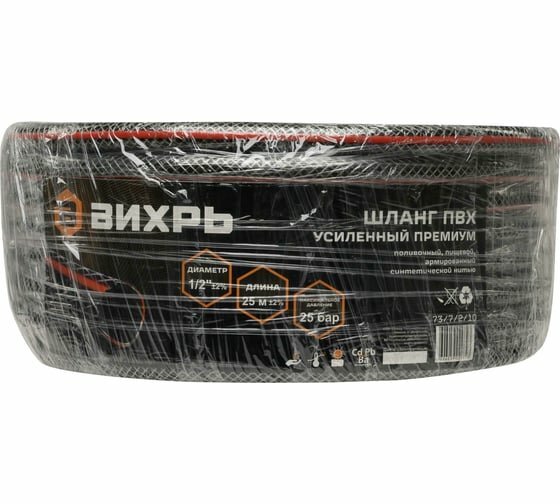 Шланг поливочный Вихрь ПВХ усиленный премиум армированный 1/2, 25м
