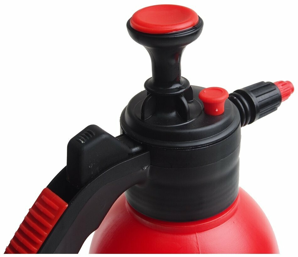 Хорошо распыляет. Струя уверенно бьет метра на 3-4. Есть режим водяного тумана. Легко накачивается. Имеется клапан для стравливания давления. В комплекте идут носик распылителя и уплотнительная прокладка, которые удобно прячутся под крышечку в накачной ручке. |
