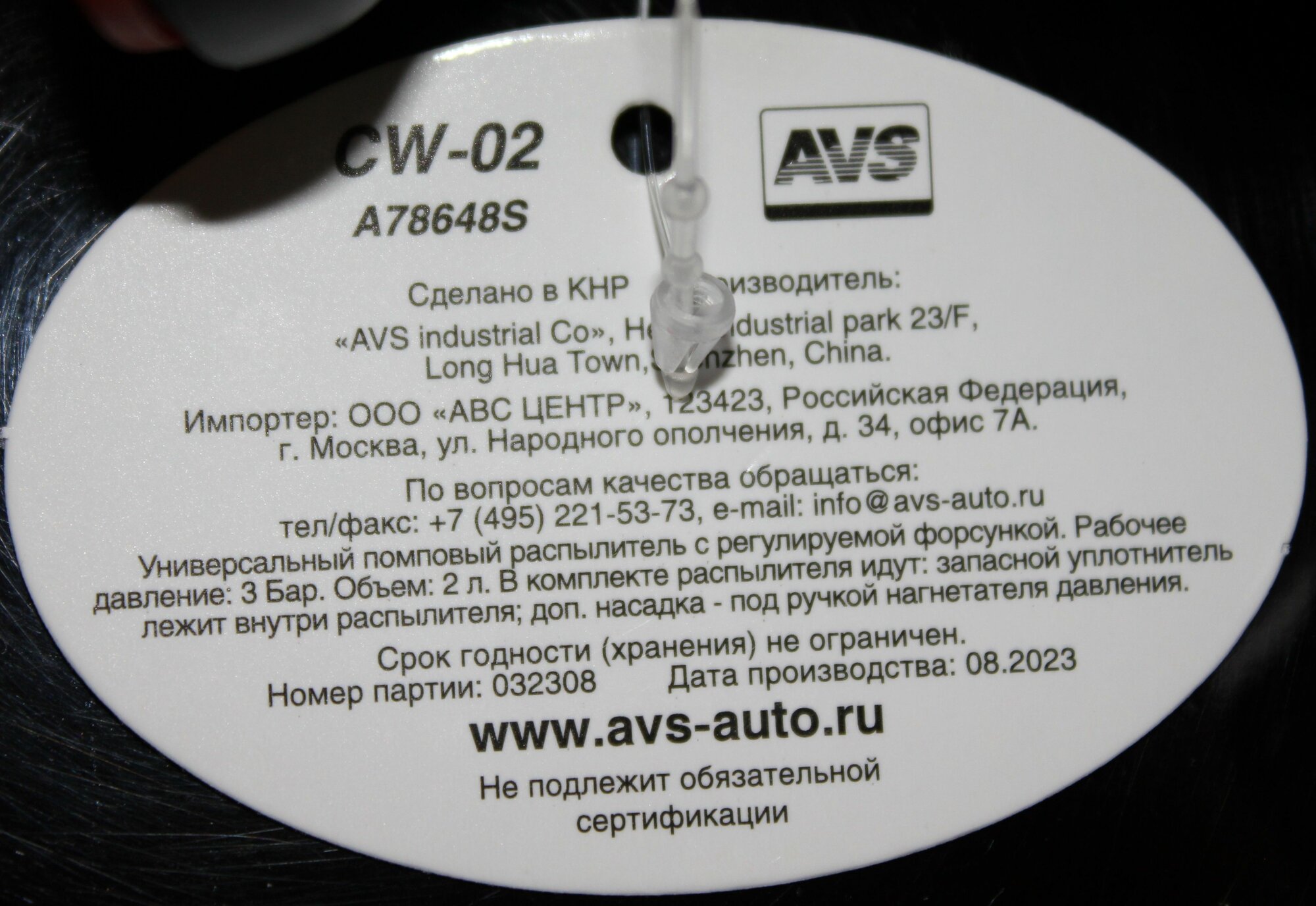 Распылитель помповый (2 литра) AVS CW-02 интересное: