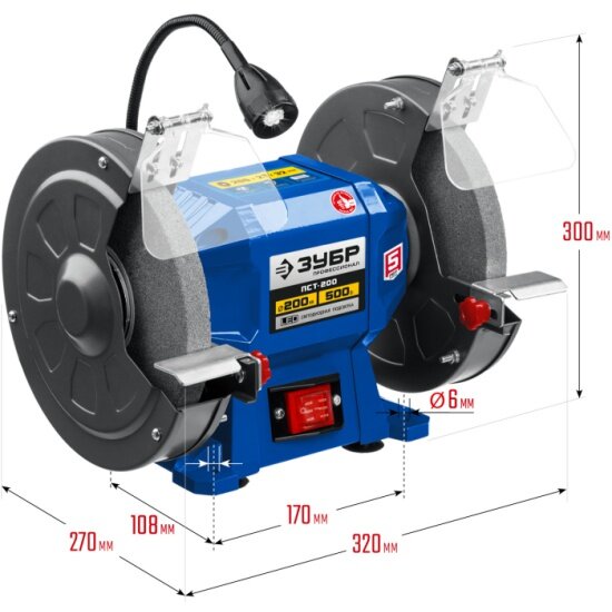 ЗУБР d 200, 500 Вт, заточной станок, Профессионал (ПСТ-200)