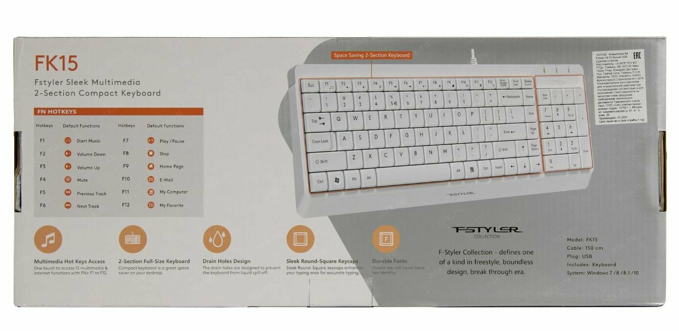 Клавиатура A4Tech Fstyler FK15, белый, USB