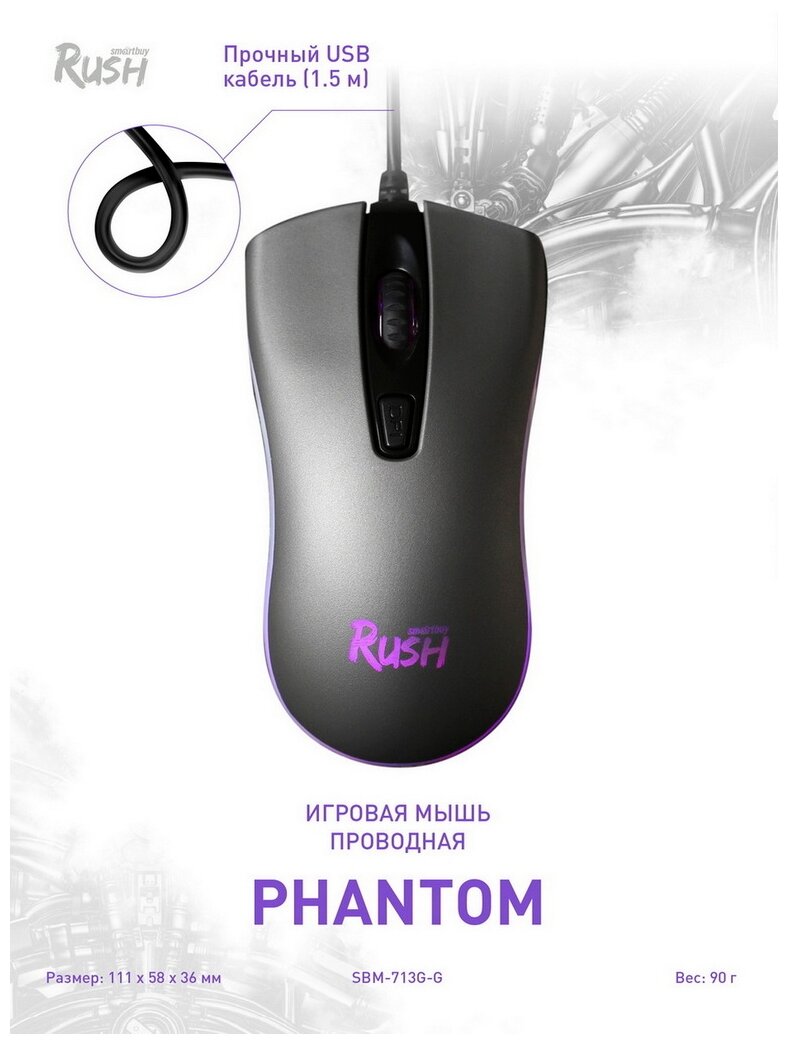 Мышь проводная игровая Smartbuy 713 RUSH Phantom металл (SBM-713G-G) / 100 суперцена