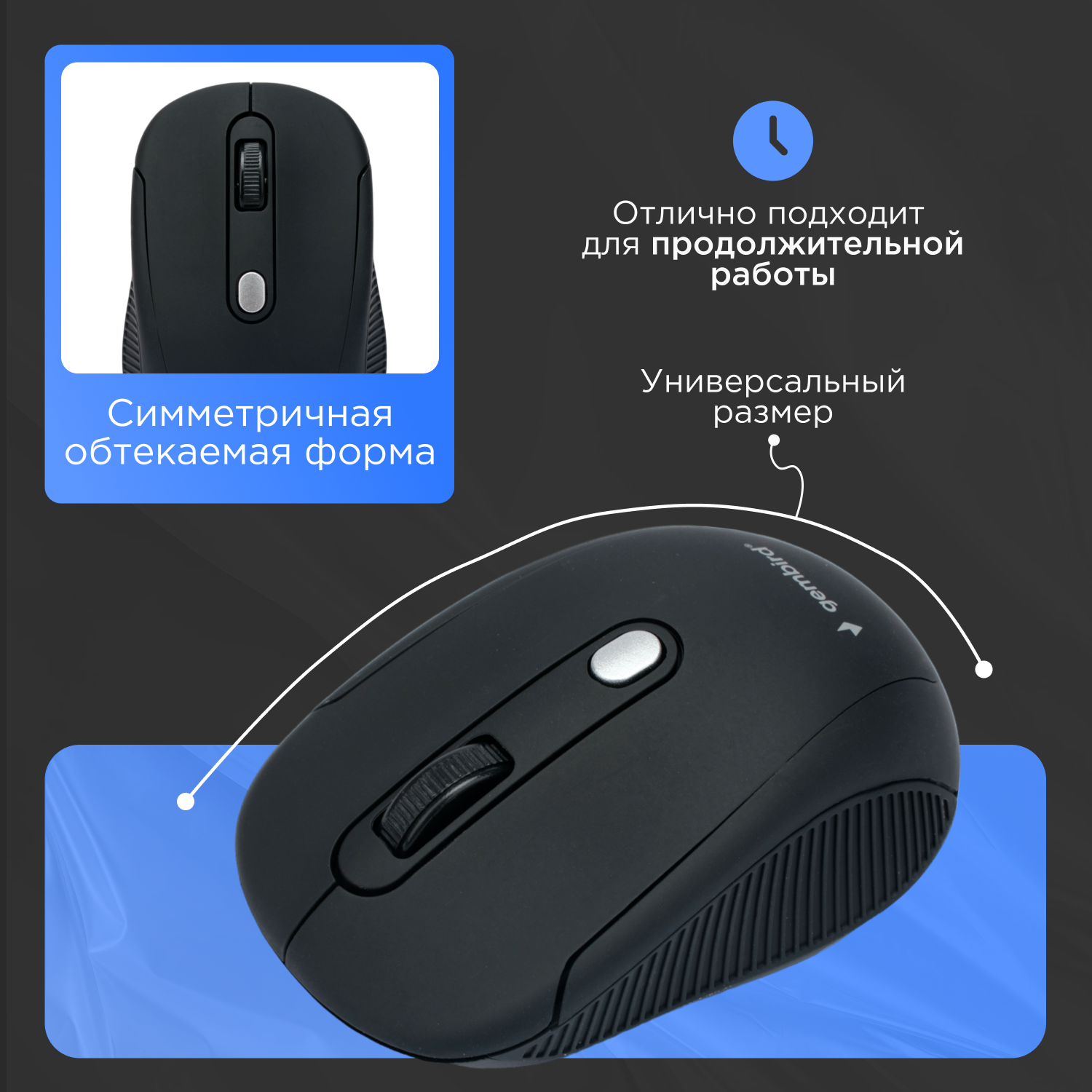 Купить Мышь беспроводная Gembird MUSW-420 бесшумный клик, 4кн, 1600 dpi, чёрная