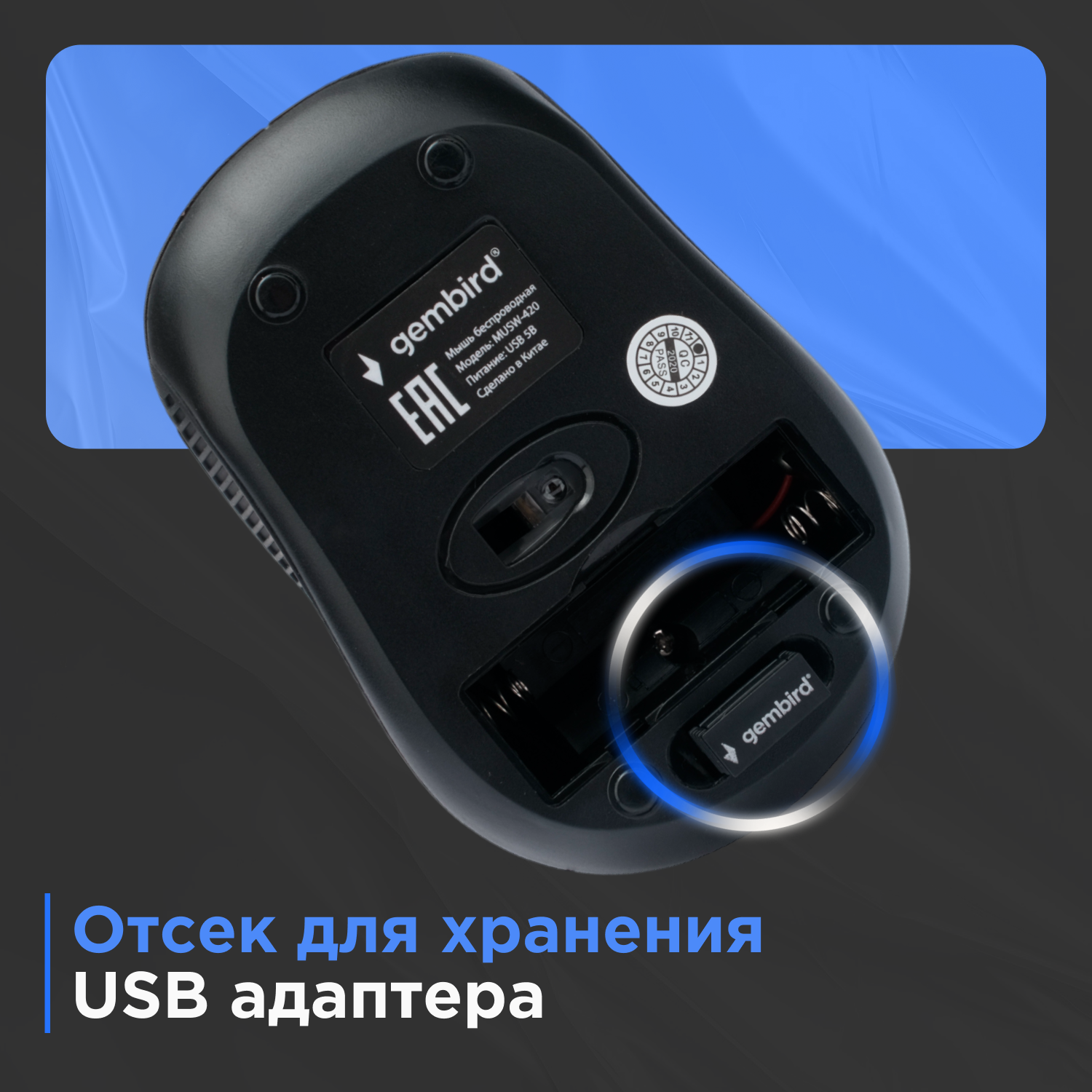 Gembird MUSW-420 {Мышь беспроводная, 2.4ГГц, черный, 4кн, 1600DPI, блисте} [MUSW-420]
