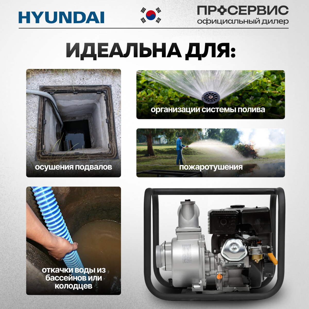СохранитьМотопомпа бензиновая Hyundai HY 100 9 л.с. 1335 л/мин интересное: